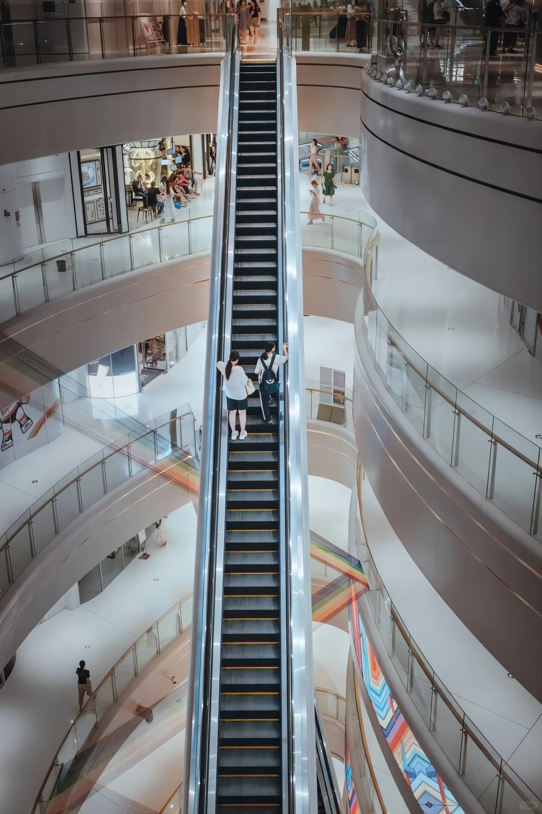 Kestävyys: Ostoskeskuksen liukuportaat on rakennettu kestäväksi ja kykeneväksi käsittelemään jatkuvaa käyttöä pitkien ajanjaksojen aikana.
